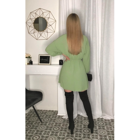 Krótka luźna sukienka w gumką w pasie i długim rękawem. Pasuje do stylizacji codziennej jak i wyjściowej. Dostępne w różnych kolorach, rozmiar uniwersalny.
