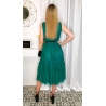 Tiulowy model o długości midi, góra wycięta w serek, dopasowana, dół lekko rozkloszowany z falbaną, idealnie komponuje się z górą sukienki. W pasie przy każdym kolorze wszyta czarna tasiemka, z tyłu suwak kryty. Zwiewny, bardzo kobiecy model idealny na wesela, studniówki oraz inne wystawne uroczystości.