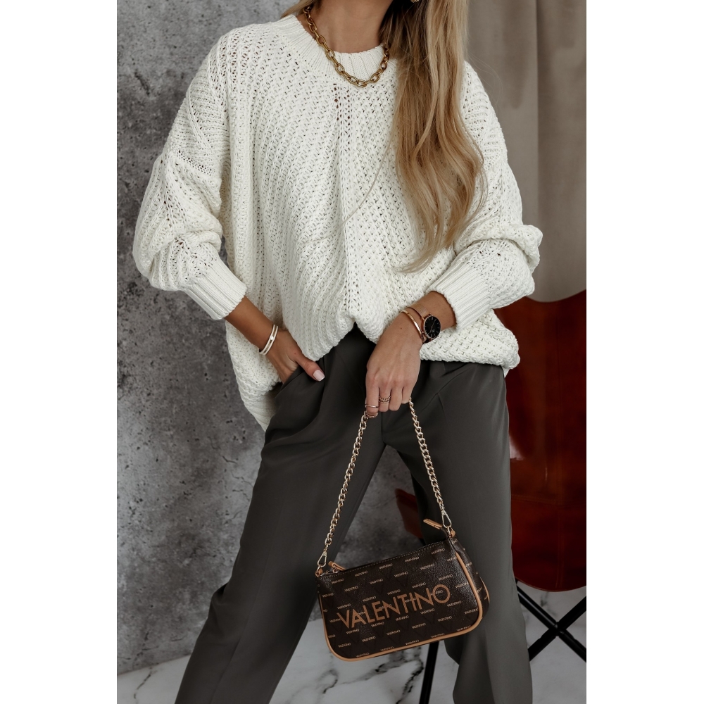 Luźny sweter z grubym splotem w prążek. Model szeroki, zabudowany o uniwersalnym rozmiarze i długim rękawie. Przyjemny w dotyku o wysokiej jakości materiale, pięknie się układa.